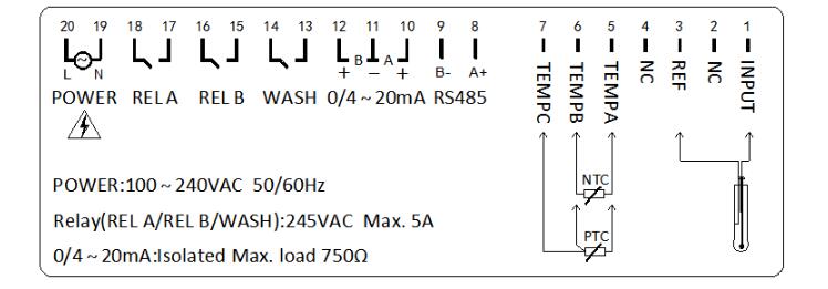 9、RS485 B-:RS485通訊輸出B-
